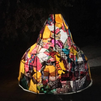In addition to the main program, a volunteer eco-action took place on shallow spit of the Azov coast during the symposium, where members of the residence cleared the shoreland off the garbage at the entrance to Biryuchyi. Vladimir Gulich and Nastya Loyko created a bright sculpture - a ceiling - from plastic bags collected on the coast.