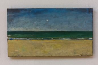 Созданная “с натуры” живописная серия Матвея Вайсберга (Киев) “Несколько сонетов, посвященных Джону Констеблу” отразила полную палитру Азовского моря, и, по словам автора, состояние полноценного счастья по Бродскому: “...жил у моря, играл в рулетку...”. Эльмира Шемсединова (Киев) создала серию акварельных морских этюдов и живописную работу по мотивам одного из них. Шесть классических морских пейзажей, заключенных в строгие геометрические формы фото-кадров, представил Юрий Пикуль (Киев). “Картины, написанные сердцем, на море...” Владислава Шерешевского (Киев) продемонстрировали ироничную сюжетную линию в серии “Морская”.
