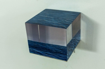 Скульптор Назар Билык (Киев) создал минималистичный объект из полиэфирной смолы “Хождение по воде” – “обращение к библейскому сказанию о чуде, о его возможности в нашей жизни, о нашем желании и надежде” – прозрачный куб, в гранях которого отражается море, создающее дополнительное пространство и объем.