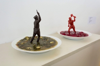 Natasha Yudina from Tomsk showed the embroidery on the plush “Venus in the snow” as a reflection on the difficult situation in contemporary art of the post-Soviet territory. Graphics "Pioneer camp named after Botticelli” became an ironic reflection of the change in location of art residences. YuriyShabelnikov (Moscow) continued his work on the study of destruction of the Soviet heritage, its fatal symbols and reflection in the everyday life of society in the installation “For borscht!” and the philosophical graphic “The Last Gulliver's Trip to Russia”.